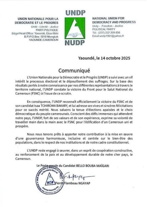 Attention… cette vidéo a été remise en circulation le matin du 15 octobre 2025, avec l’allégation qu’il s’agissait d’une rencontre ce jour-là entre Bello Bouba Maigari (UNDP) et Issa Tchiroma Bakari (ici) à la résidence de ce dernier.