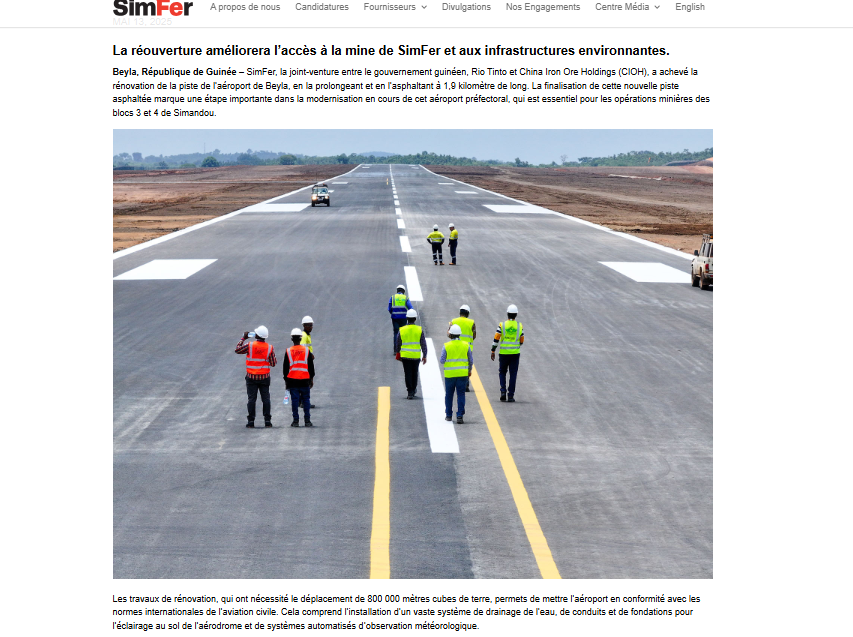Une autre recherche par mot-clés sur YouTube a permis de retrouver cette vidéo, publiée le 12 mai 2025. Une production qui permet de savoir dans quel contexte ces images ont été faites. “Nous sommes fiers d’annoncer l’achèvement des travaux de rénovation de la piste d’atterrissage de l’aéroport de Beyla. Désormais asphaltée et prolongée à 1,9 km, cette nouvelle piste renforce l’accès aux blocs 3 et 4 de Simandou, tout en améliorant la connectivité de la région. Menés dans le respect des normes internationales, les travaux ont mobilisé 480 personnes, majoritairement issues des communautés locales et ont totalisé plus de 500 000 heures de travail sans incident. Ce projet s’inscrit dans notre engagement à développer des infrastructures durables, au service de nos opérations et des populations locales. L’aéroport rénové devrait accueillir plus de 45 000 passagers par an et créer de nouvelles opportunités économiques pour Beyla et ses environs”.